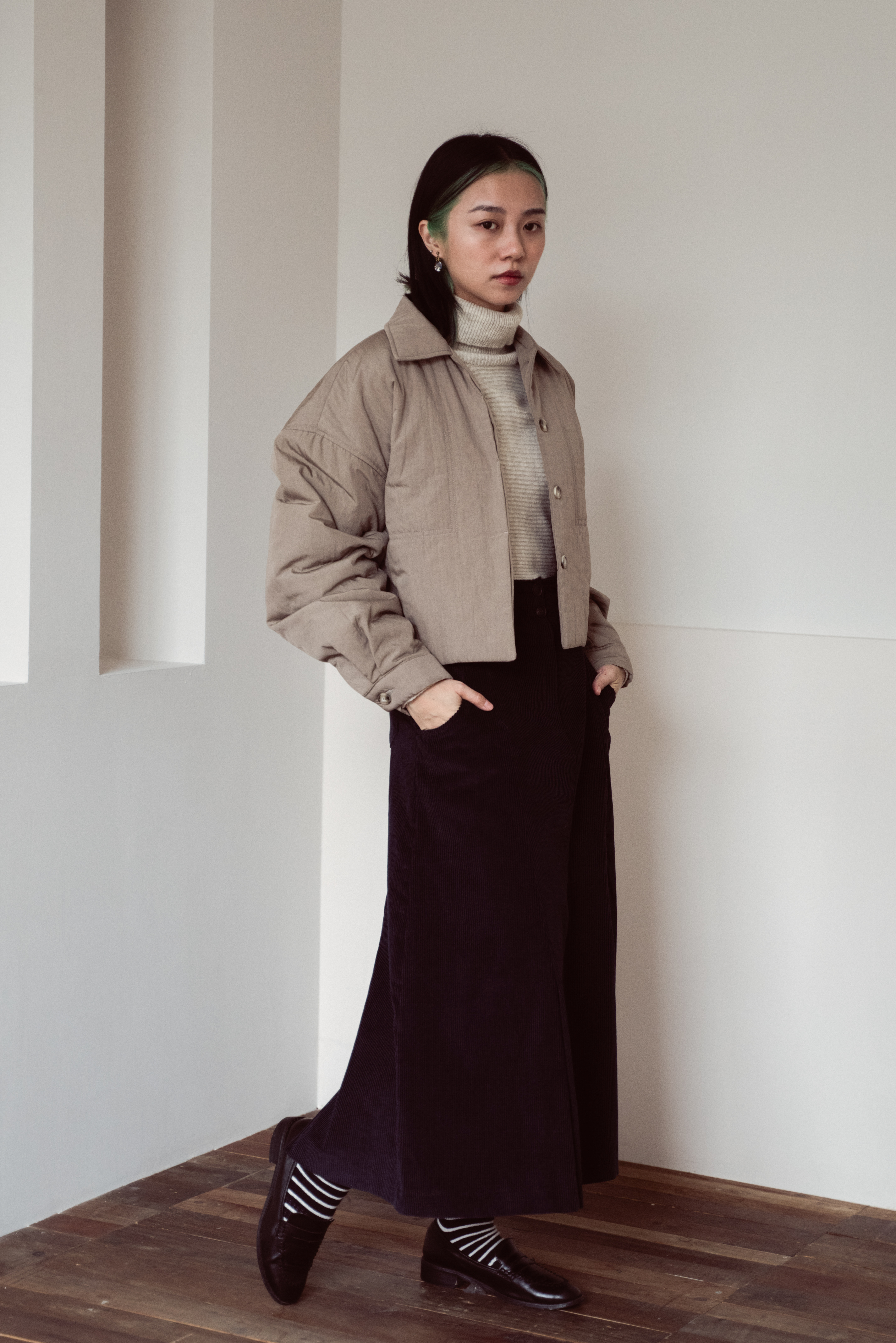 如果需要更具保暖度,內裡含有鋪棉的外套也會是不錯的選擇。