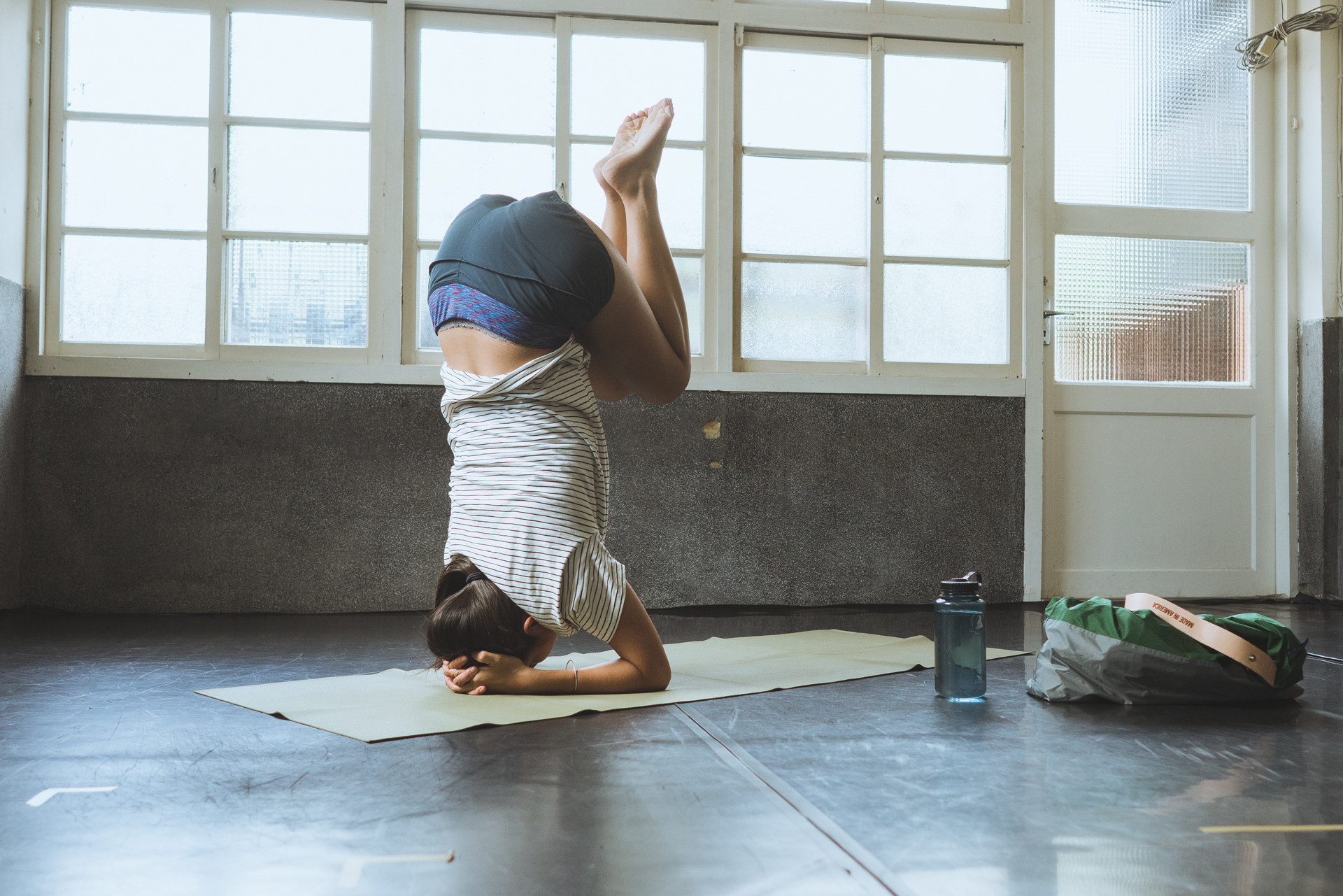 這真的很值得介紹。這個瑜珈墊是旅行墊,還沒跟我出過國不過已經跟我去過台東、花蓮、台南、宜蘭等地,旅行或是工作的時候我都會帶著它。雖然經過頻繁使用已經有一點汙漬…不過我真的很喜歡它,跟這個包包一樣非常輕薄,是天然的橡膠材質,不但止滑也比較環保。