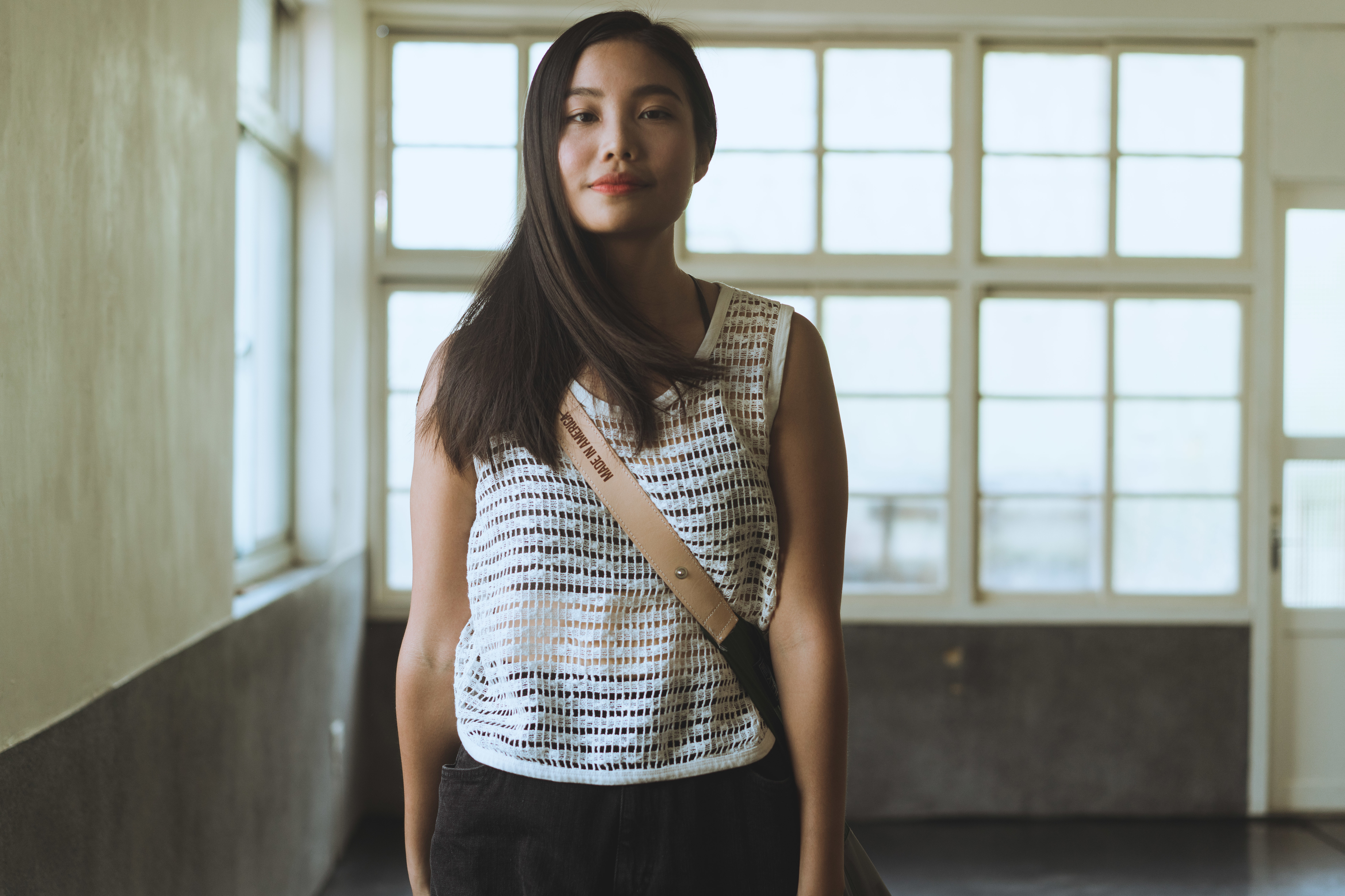 我覺得它整個很符合我對隨身包包的需求,不會像我們之前對所謂「輕便材質包包」有的陽春想像。比方說他有做一些細節,像是背帶,這個皮質背帶有燒灼字樣、又是異材質的拼接我覺得很可愛。細節上都做得很不錯,而且就像我剛剛說的:輕薄又能耐重度, 我覺得真的很方便。