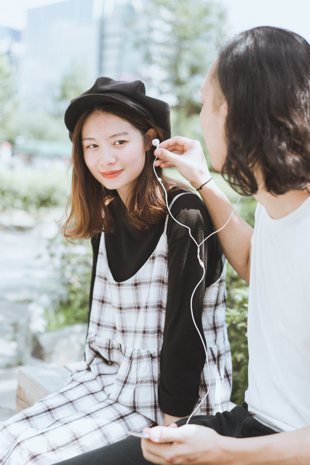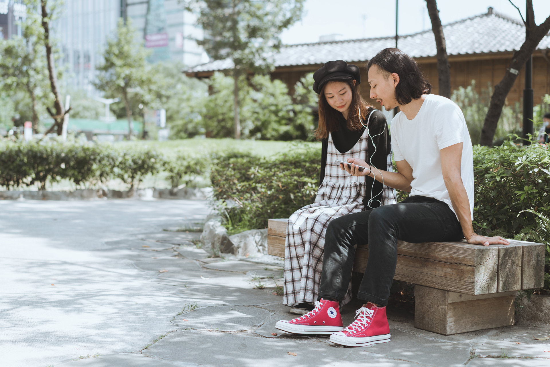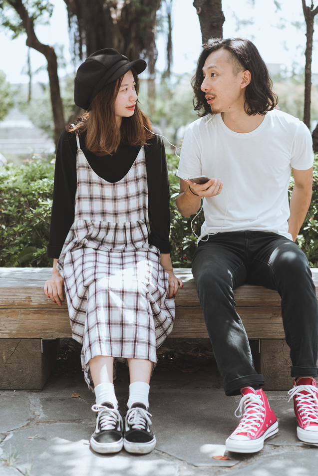 我最喜歡《我想養流浪狗》、他最喜歡《壞習慣》,一起唱著喜歡的歌,一邊讚嘆歌詞怎麼可以把情境描寫得這麼簡潔又完整。也分享了對方沒聽過自己卻很喜歡的歌曲,就這樣兩人沉默著共享一首歌,一句話也沒說卻很自在;這個下午就這樣坐在同一張長凳上度過了。